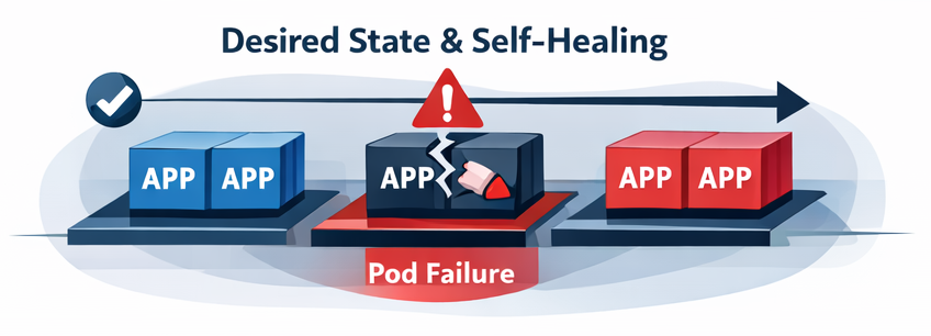 Instead of manually running containers on individual servers, you describe what you want — and Kubernetes continuously works to make reality match that desired state.